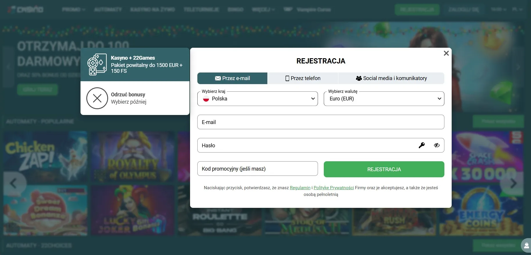 Bonusy kasynowe i darmowe spiny