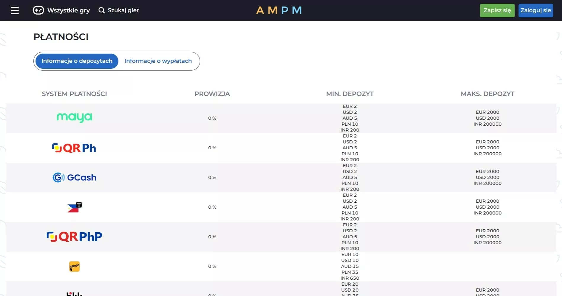 Warto podkreślić, że dla szybkich wypłat AMPM zaleca korzystanie z tej samej metody, która była użyta przy wpłacie. W praktyce znacznie skraca to czas przetwarzania wypłat, co potwierdziliśmy podczas naszych testów.