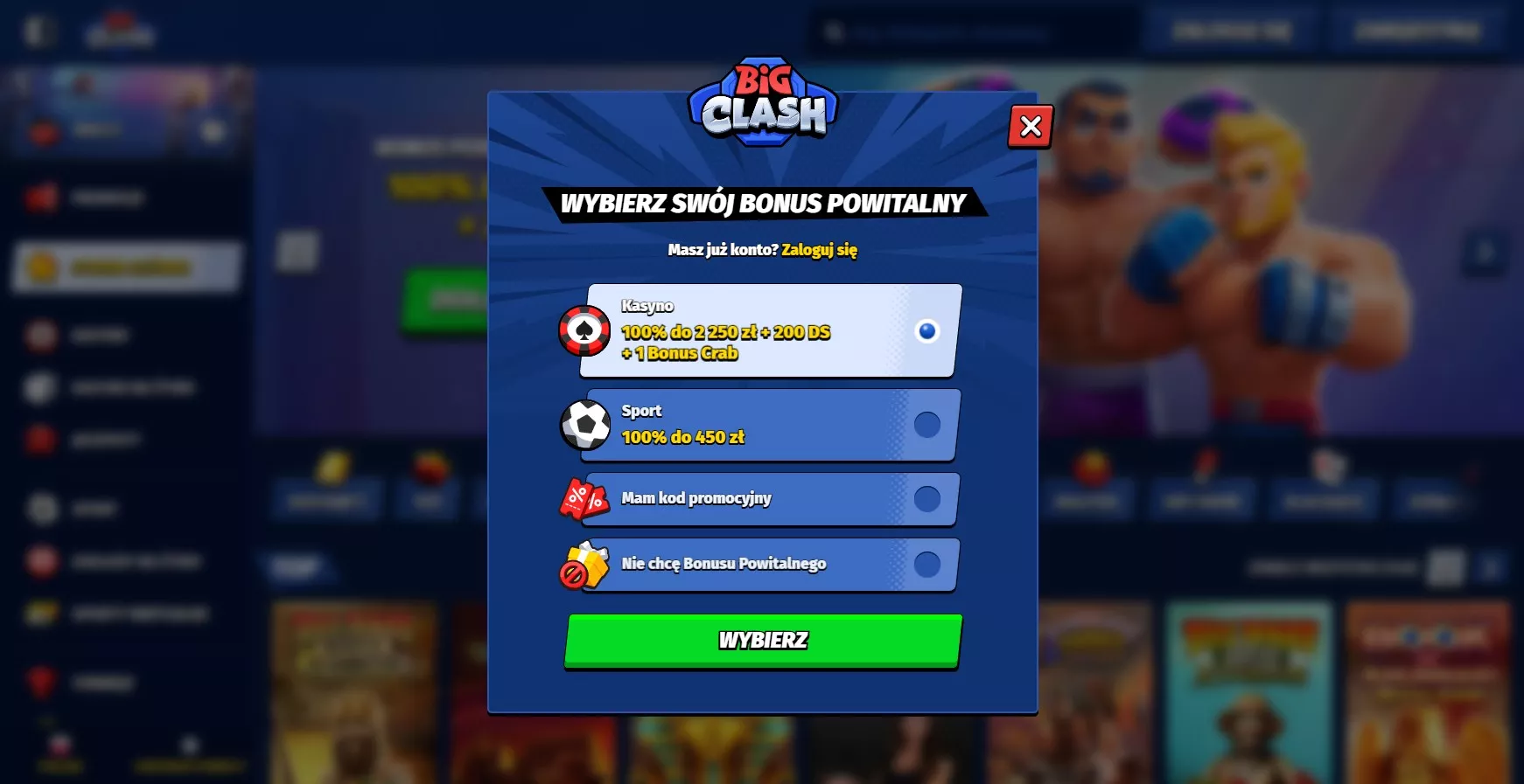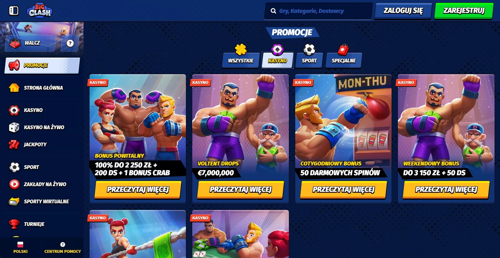 W kasynie online BigClash system nagród został podzielony na kilka kategorii – dla nowych graczy, regularnych użytkowników oraz uczestników programu VIP. Oferta obejmuje zarówno klasyczne nagrody depozytowe, jak i darmowe spiny, cashback oraz nietypowe dodatki, takie jak Bonus Crab. Poniżej przedstawiamy aktualne bonusy w kasynie BigClash w 2026 roku.