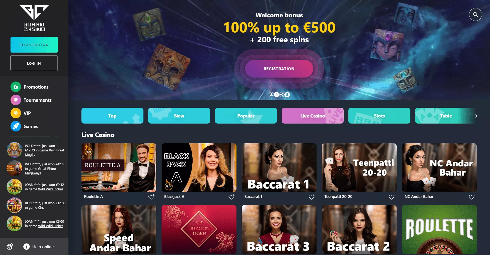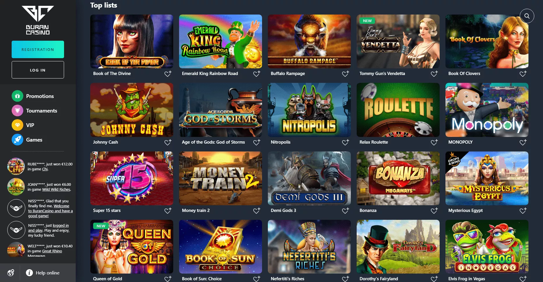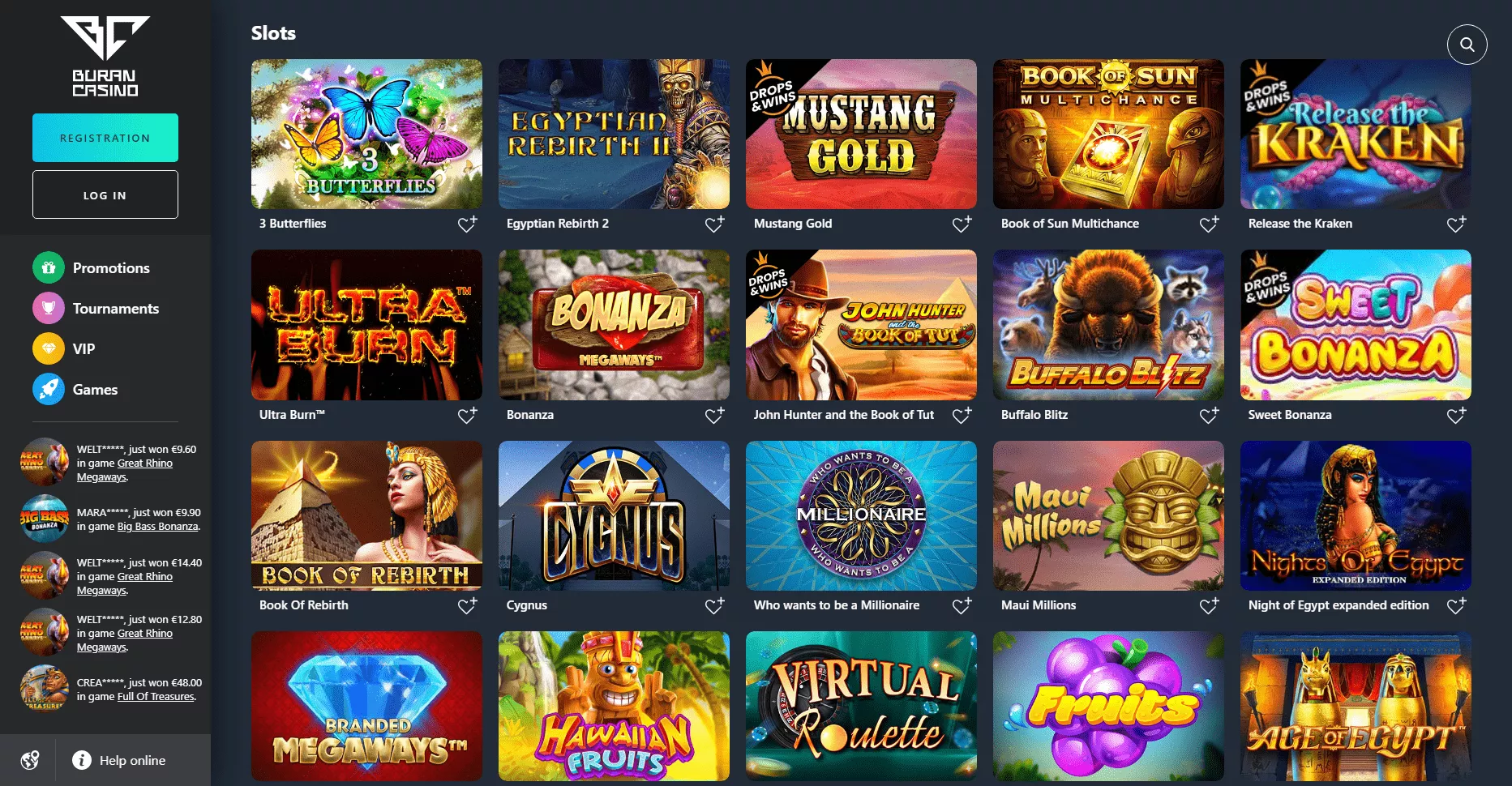 Wszystkie gry (oprócz gier z prawdziwym krupierem), są dostępne w Buran casino za darmo i za prawdziwe pieniądze. W tym kasynie online można znaleźć gry od Yggdrasil, NetEnt, Pragmatic Play, Quickspin czy Play’n Go.