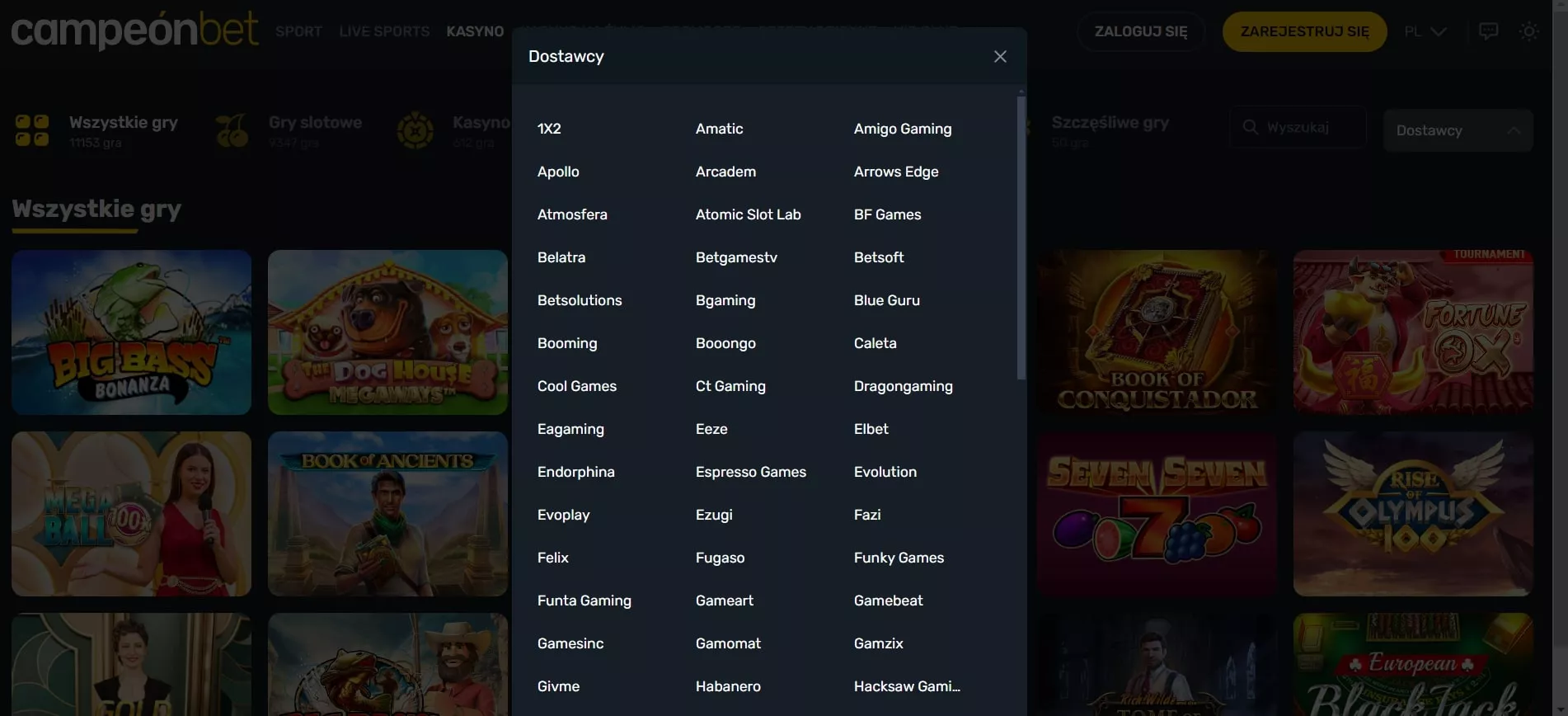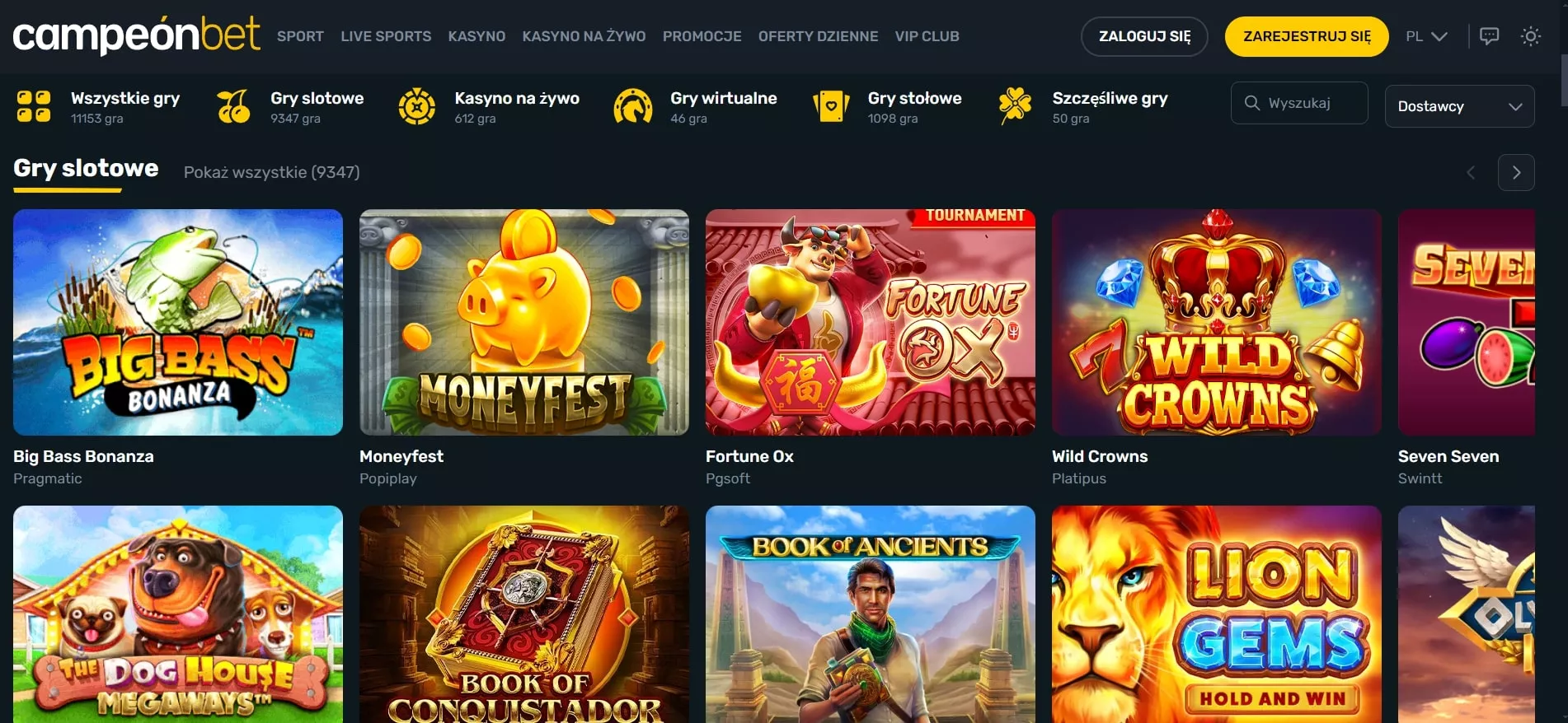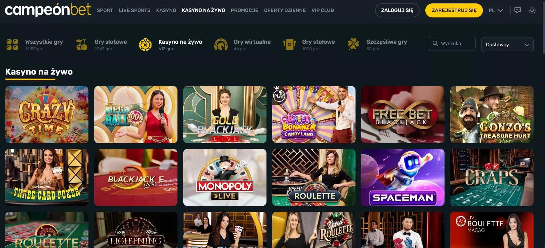 Campeonbet dla graczy z Polski oferuje ponad 13000 gier od 102 różnych dostawców oprogramowania. Biblioteka tytułów obejmuje wszystkie główne kategorie hazardowe: sloty, gry stołowe, kasyno na żywo, gry crash, zdrapki, wideo poker oraz mini gry.