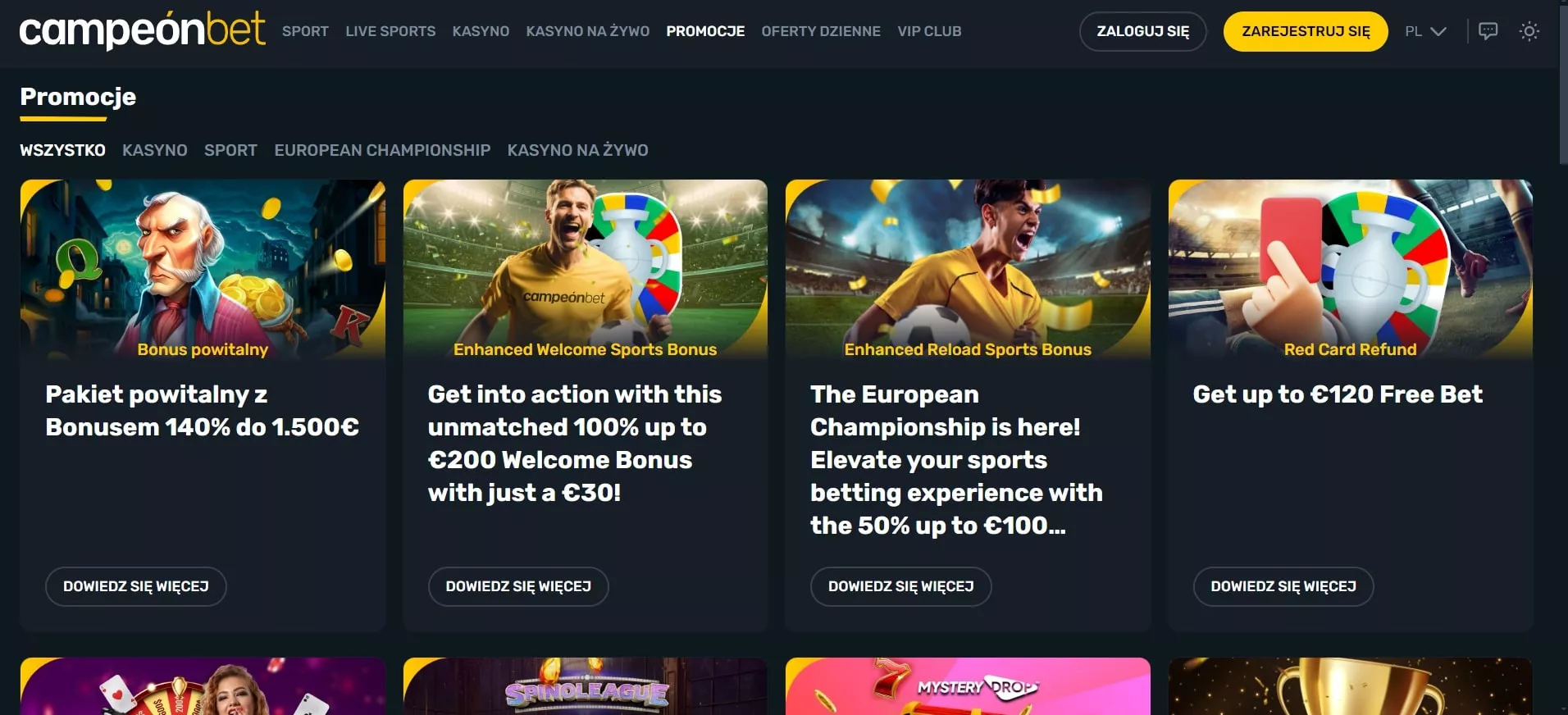 Oprócz wymienionych bonusów w kasynie Campeonbet dostępny jest również program VIP, turnieje z pulami nagród do 6 000 000 EUR oraz dzienne oferty obejmujące bonusy od depozytu, zwroty gotówki, darmowe obroty i żetony.