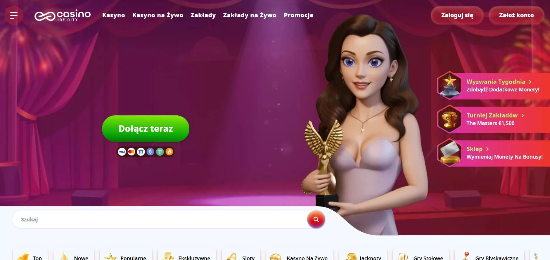 Dla stałych graczy dostępne są z kolei liczne turnieje. Oficjalna strona online kasyno CasinoInfinity w Polsce 2026 posiada też program lojalnościowy, który oferuje liczne zalety, jak na przykład 10% cashback od wszystkich przegranych.
