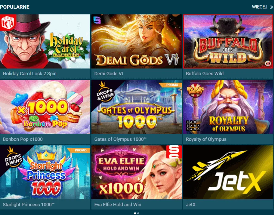 Kasyno udostępnia setki slotów online o różnej tematyce i mechanice, w tym: