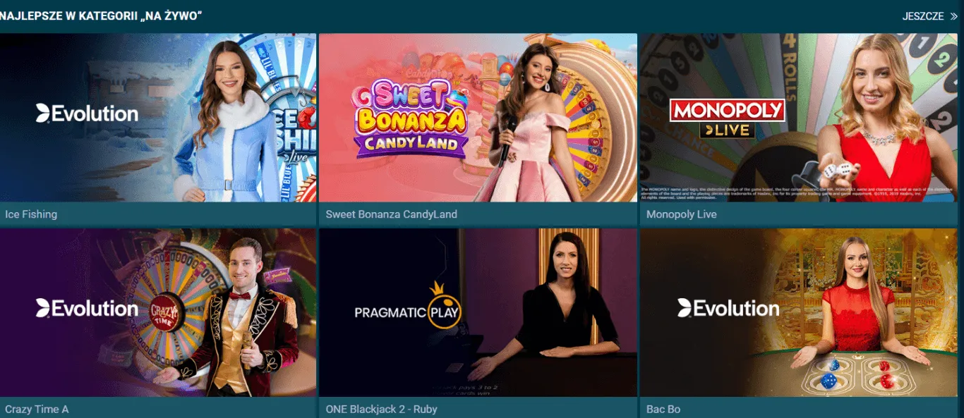 Sekcja live casino umożliwia grę z prawdziwymi krupierami w czasie rzeczywistym. Dostępne gry to m.in.: