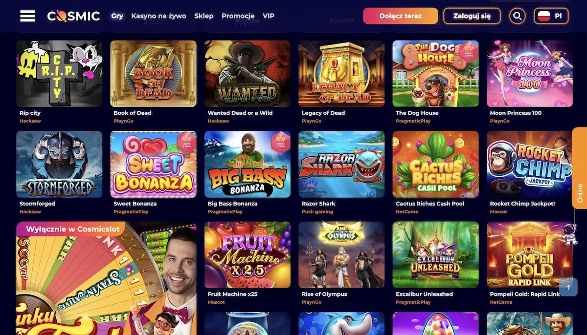 Automaty i gry kasynowe dostępne w CosmicSlot