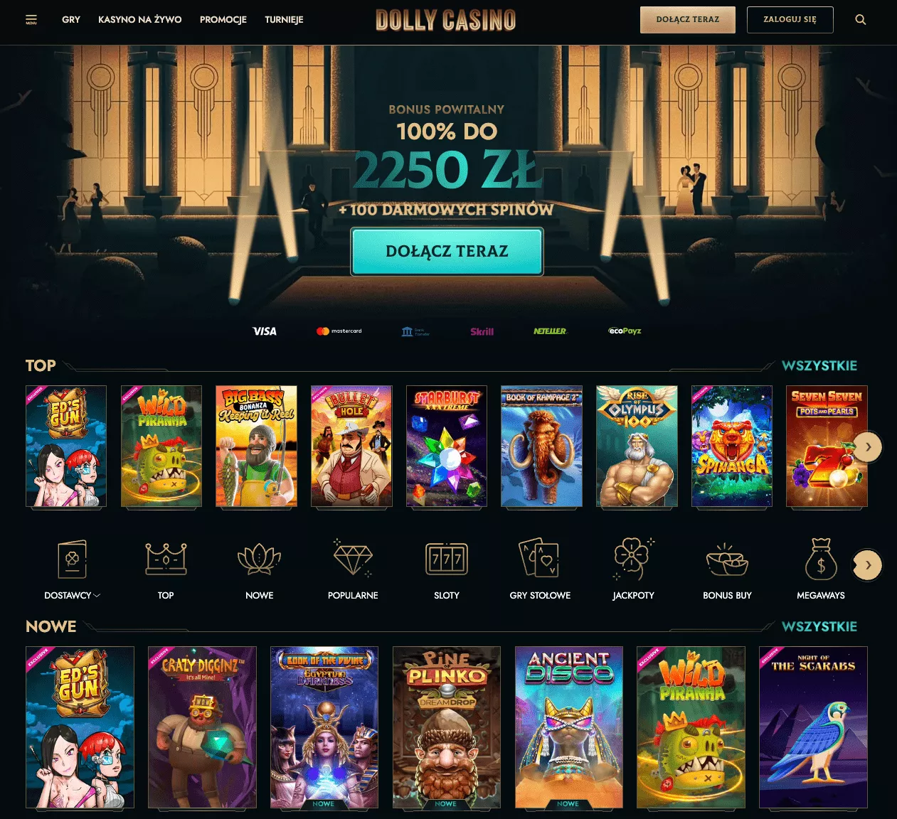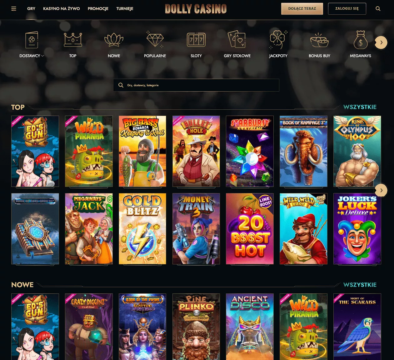 Gry Dolly Casino to wiele najpopularniejszych slotów. Możesz kręcić bębnami do różnych typów motywów, a gry przenoszą Cię do wszelkiego rodzaju królestw, czy to w kosmosie, pod oceanem, czy z powrotem do starożytnego Egiptu. Istnieje również wiele konfiguracji bębnów do wyboru, z silnikami Megaways, klastrami, kaskadowymi bębnami, tradycyjnymi 3-bębnowymi automatami i wieloma innymi.