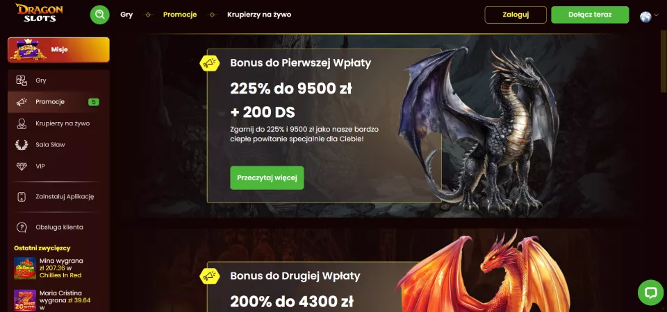 Bonusy w Kasynie DragonSlots dla Polskich Graczy