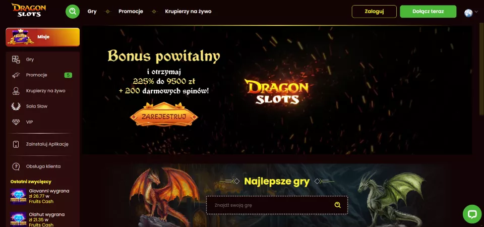 DragonSlots to nowoczesne kasyno internetowe, które powstało w 2026 roku. Pakiet powitalny sięga aż 22 400 PLN, co czyni go jednym z najbardziej konkurencyjnych na rynku. Gracze mają dostęp do ponad 5000 gier, w tym automatów, gier stołowych i kasyna na żywo. Unikalny program VIP składa się z 50 poziomów, oferując dodatkowe korzyści, jak free spiny i dodatkowa gotówka na grę. Co więcej, kasyno umożliwia wysokie limity wypłat. W tej recenzji DragonSlots szczegółowo omawiamy te kluczowe funkcje i promocje operatora.