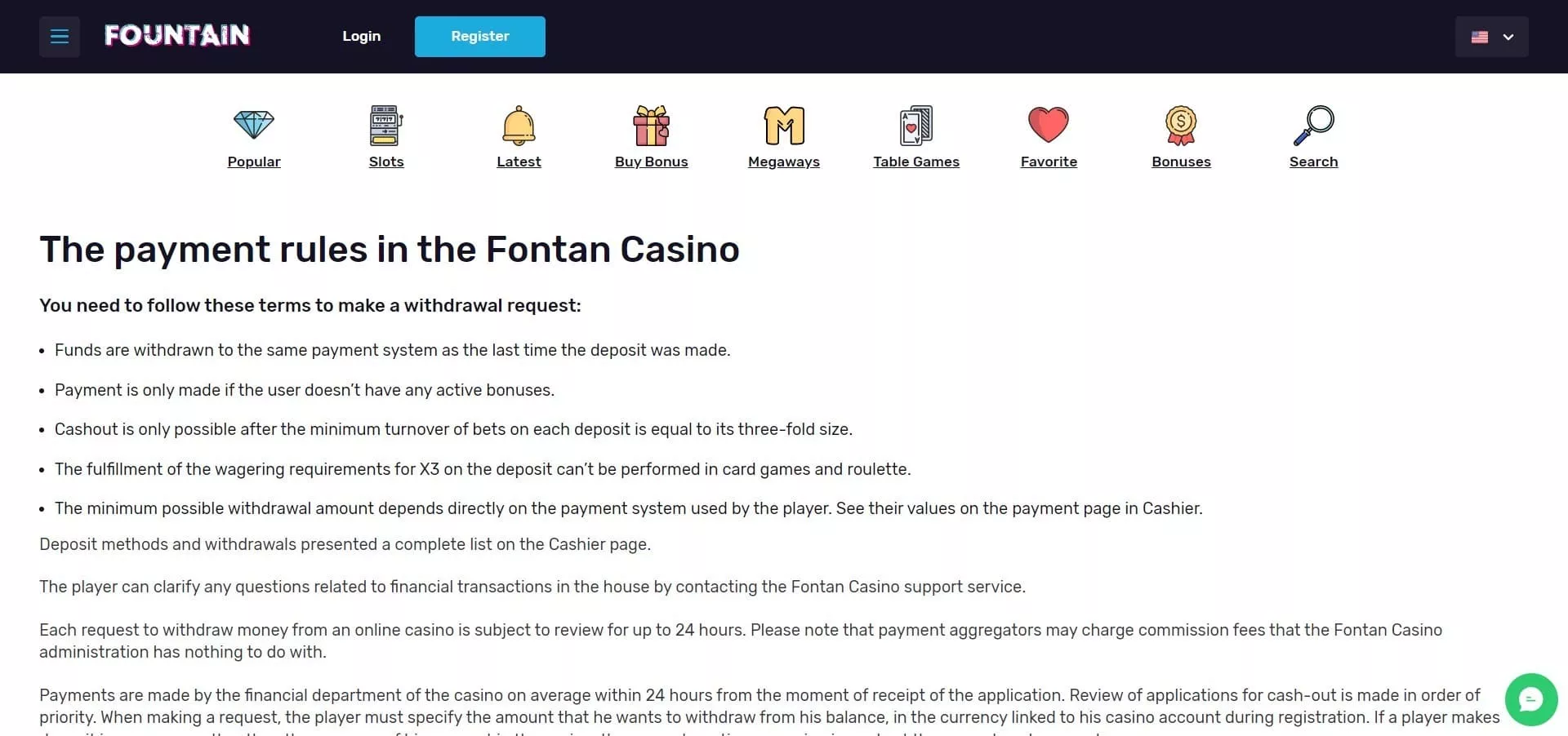 Fontan kasyno jest jednym z mniejszych kasyn online, więc mogą się pojawić problemy z wypłatą większych wygranych. Brak języka polskiego utrudnia granie wielu z nam.
