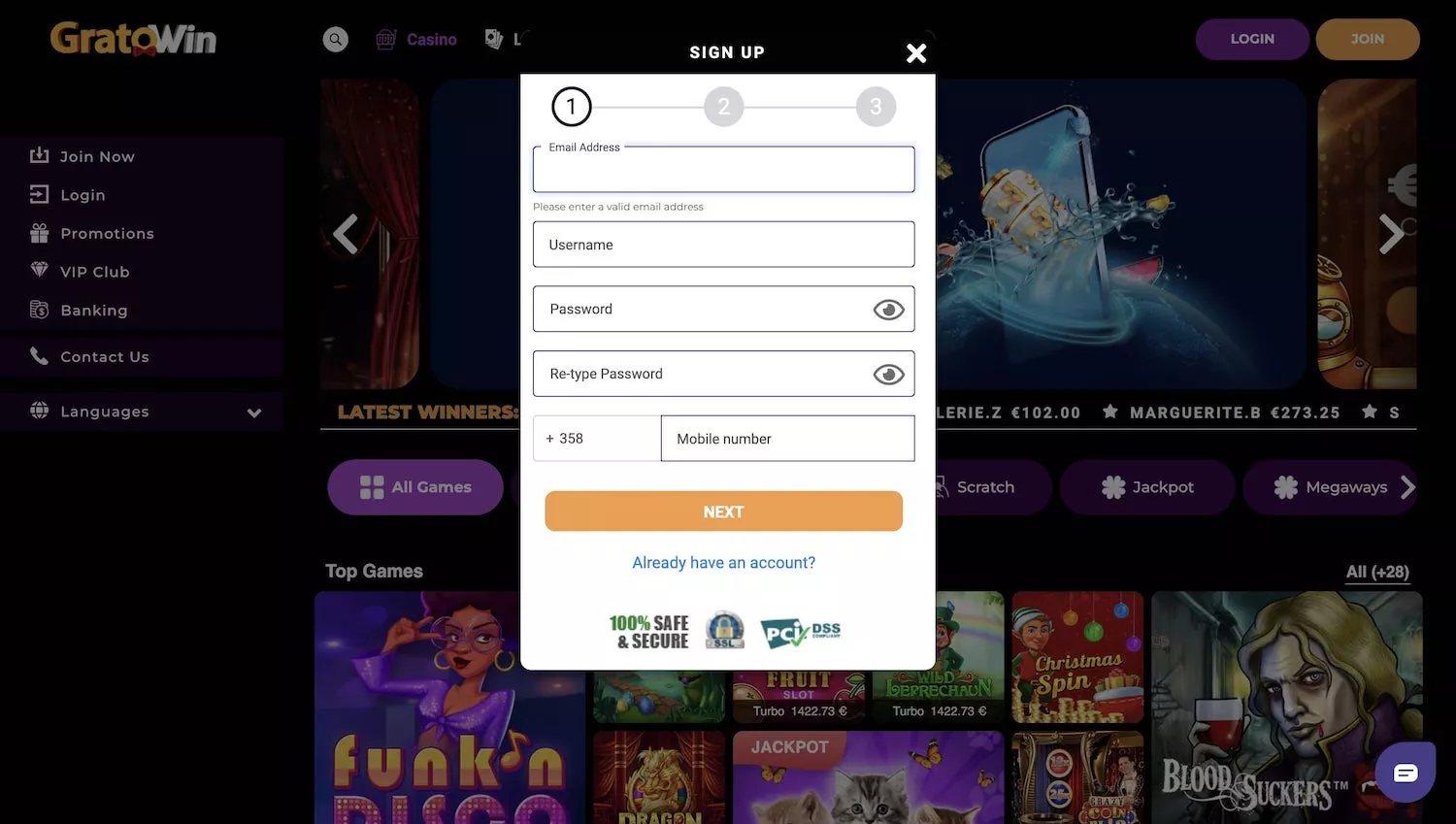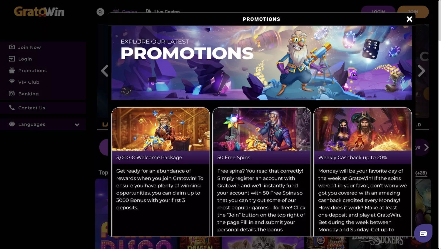 Nasi eksperci potwierdzają, że Gratowin bonus bez depozytu to jedna z najbardziej atrakcyjnych ofert dostępnych w tym kasynie internetowego — ale tylko na stronie Dobramine otrzymasz ekskluzyjne 50 darmowych spinów za samą rejestrację. Wystarczy założyć konto gracza i wpisać kod promocyjny DOBRAMINE, aby aktywować spinów bez depozytu.