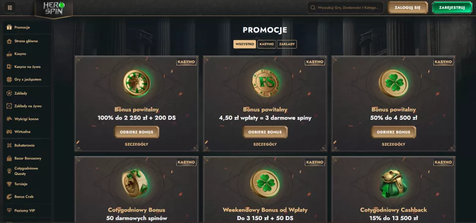 Nasi eksperci dokładnie przeanalizowali ofertę bonusową Herospin, aby przedstawić graczom z Polski aktualne promocje na luty 2025. Od atrakcyjnego bonusu powitalnego po regularne oferty cashback, kasyno Herospin zapewnia różnorodne bonusy, które mają na celu maksymalizację satysfakcji z gry.