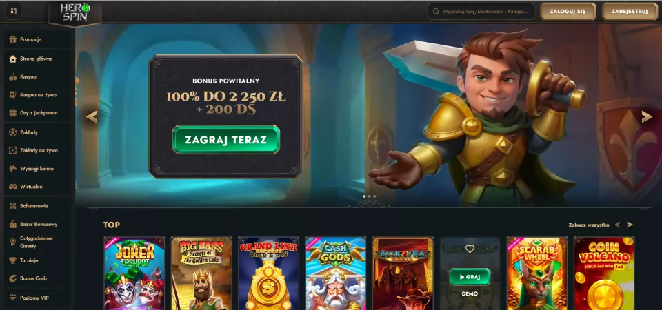 Witryna jest dostępna w 16 językach, w tym też po polsku. Herospin casino to platforma hazardowa oferująca polskim graczom dostęp do ponad 5000 gier kasynowych. Nowi użytkownicy mogą skorzystać z atrakcyjnego bonusu powitalnego: 250% do 13 500 PLN i 350 darmowych spinów. Kasyno regularnie proponuje różnorodne promocje i bonusy, takie jak cashback, codzienne oferty i program lojalnościowy. Więcej szczegółów znajdziesz w poniższej recenzji Herospin casino.