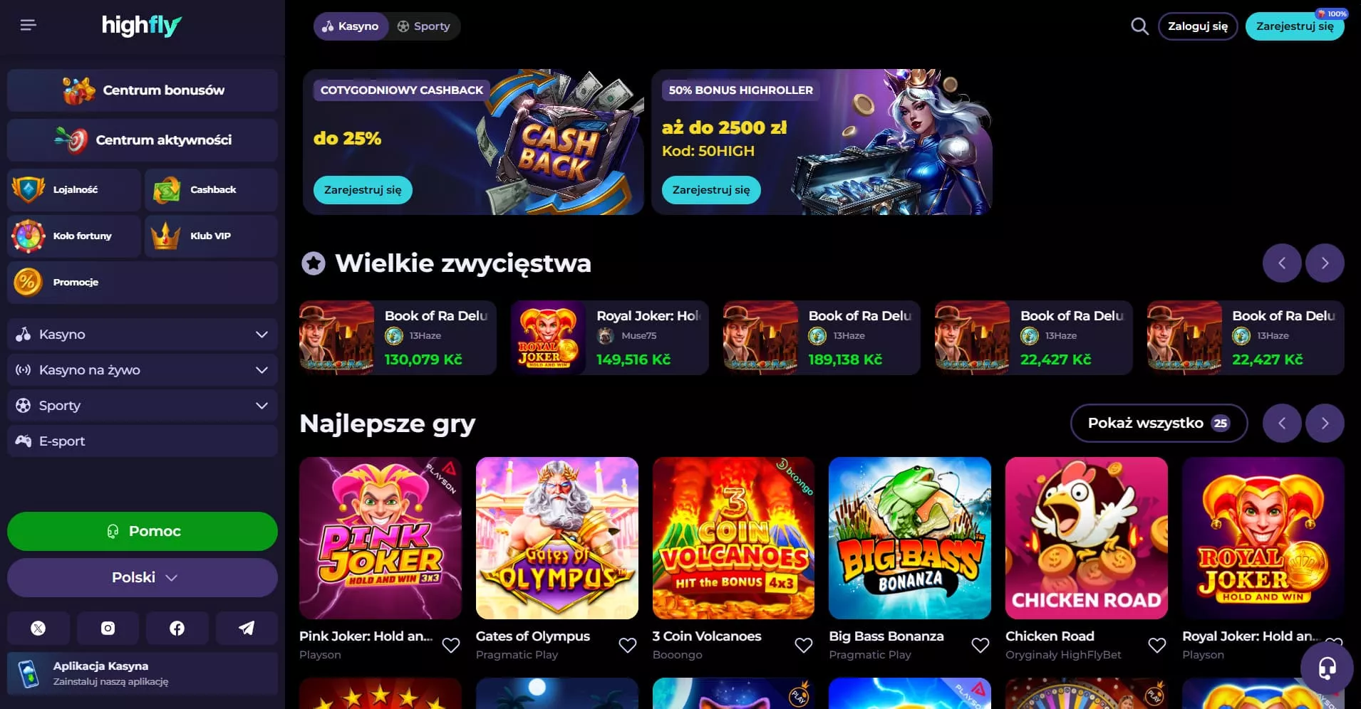 Obsługa klienta dostępna jest przez czat na żywo bezpośrednio na oficjalnej stronie oraz drogą mailową: support_cr@highflybet.com. Dodatkowo kasyno udostępnia sekcję FAQ podzieloną na cztery główne kategorie: konto, wpłaty i wypłaty, bonusy, bezpieczeństwo.