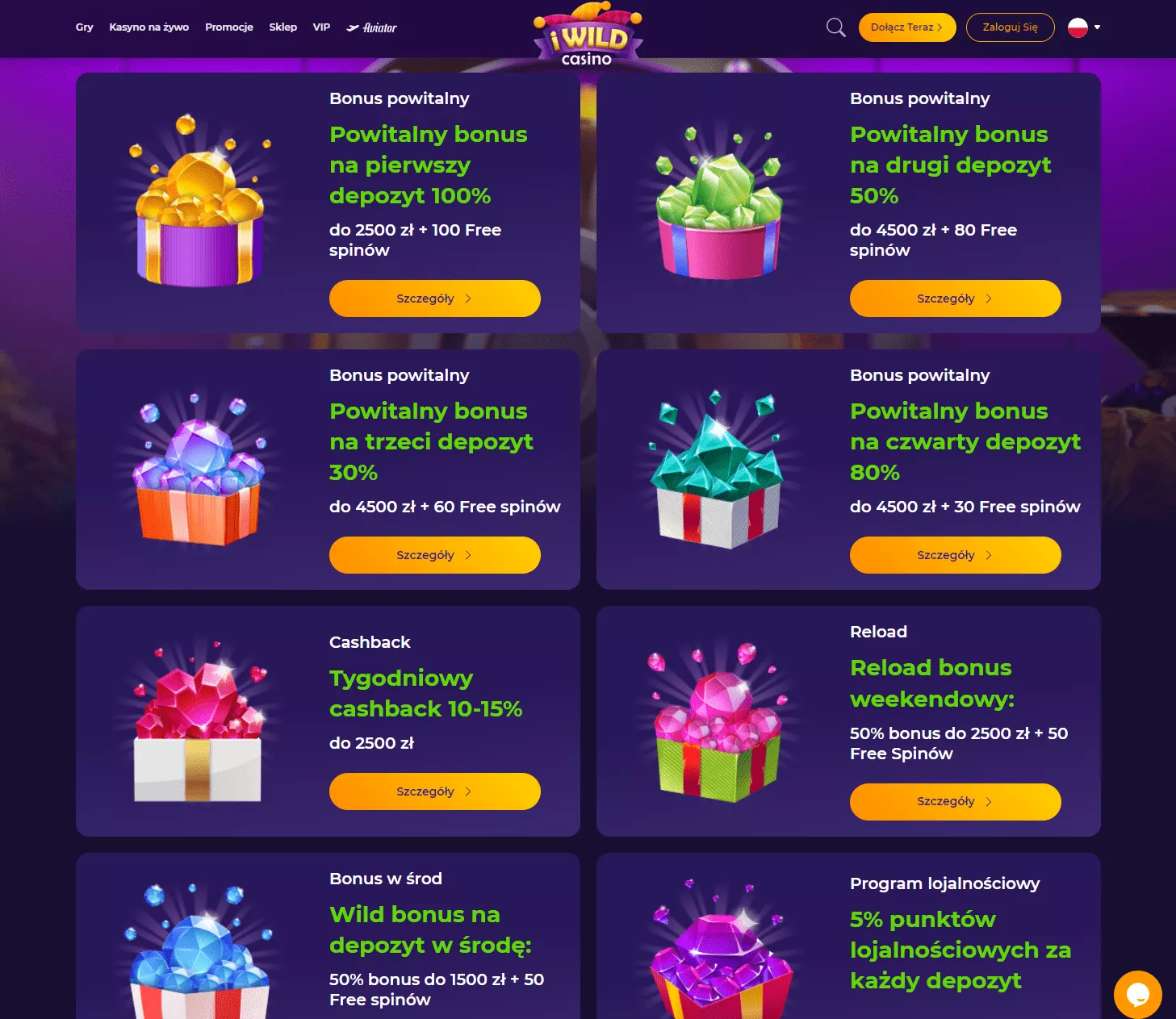 Przeanalizowaliśmy ofertę iWild Casino, które zadebiutowało na rynku w 2024 roku. Platforma hazardowa udostępnia obecnie ponad 8000 gier od 75 dostawców oprogramowania. Operator oferuje hojny bonus powitalny w wysokości 550% do 16000 PLN oraz 550 darmowych spinów rozłożonych na cztery depozyty.