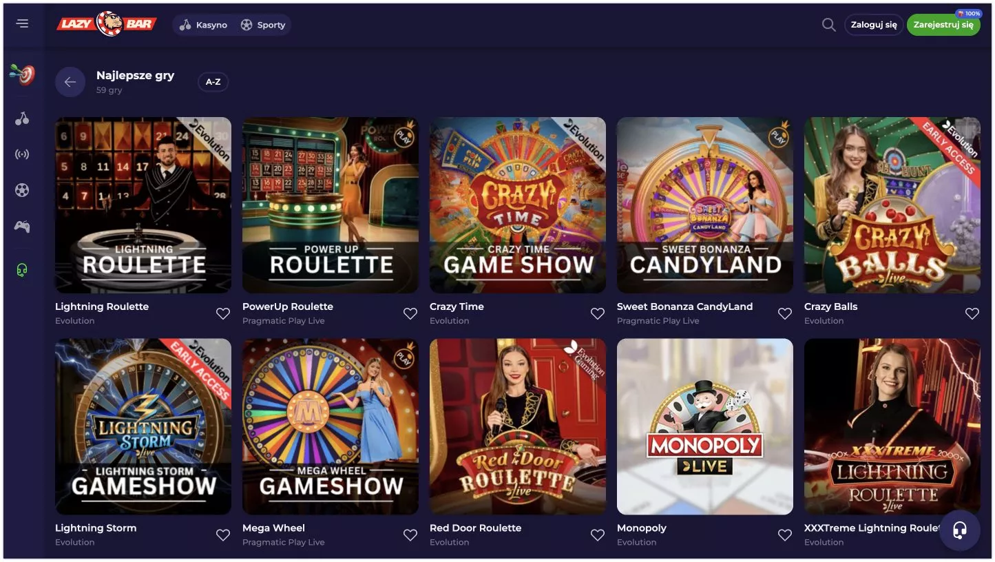 Testując Lazybar, szczególnie spodobały mi się gry na żywo, takie jak Lightning Storm i Mega Wheel, które oferują dynamiczną rozgrywkę. Z bonusów najbardziej doceniam promocję powitalną – warunki są przejrzyste, a oferta korzystna. Polecam korzystanie z płatności e-portfelami, które zapewniają szybką realizację transakcji. Graj, korzystając z wersji mobilnej – platforma działa na niej znakomicie.