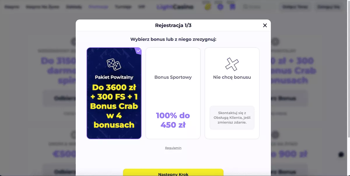 Każdy klient za darmo może odwiedzić konto przyciskiem „Zaloguj się”. Potem możesz zrealizować depozyt, a do tego zyskaj bonus powitalny i graj w kasynie online Light na prawdziwe pieniądze.