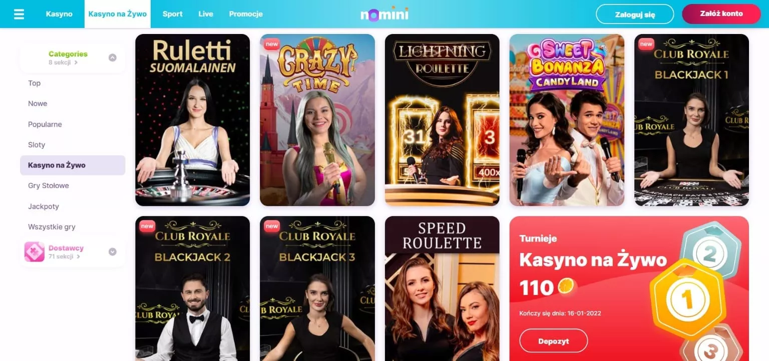 Kiedy odwiedza się Casino Nomini, oficjalna strona internetowa intryguje przemyślanym projektem i funkcjonalnością. Pomimo jaskrawych kolorów, użytkownik z łatwością odnajdzie potrzebne informacje i nie będzie się rozpraszł w trakcie gry. Wynika to z obecności kilku nagłówków, które ułatwiają znalezienie slotów lub informacji w Nomini Casino PL. Możesz przejść do standardowych gier lub gier na żywo, promocji lub zasad korzystania z zasobów.