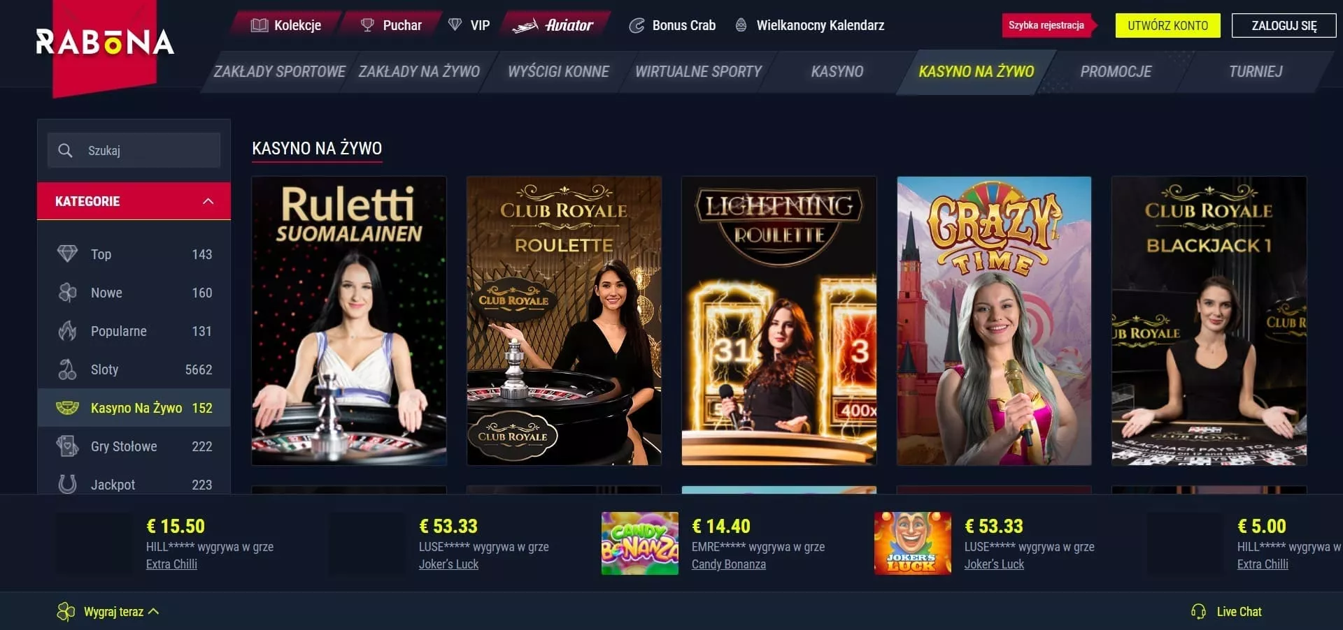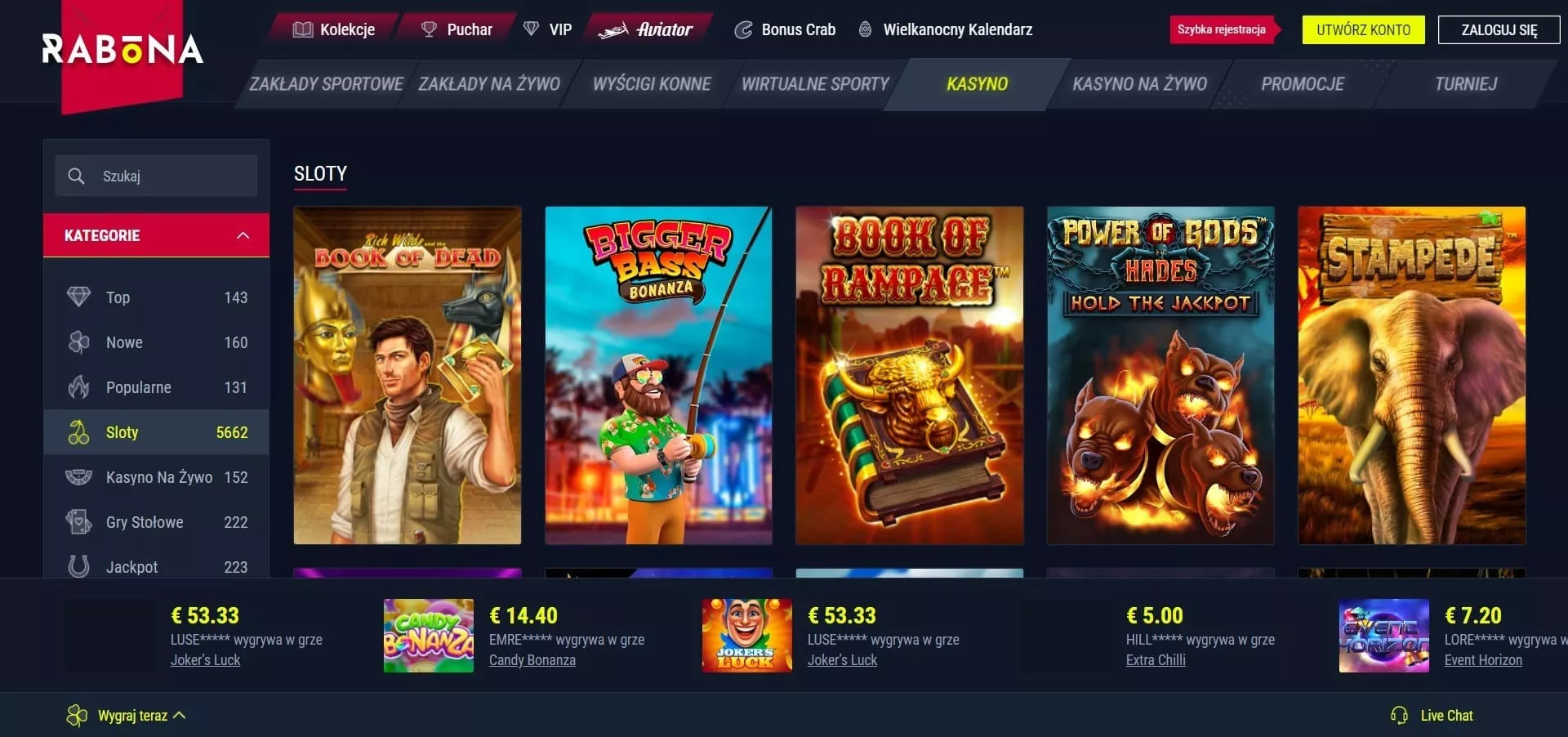 Rabona kasyno online jest dość młodym kasynem. Zostało ono bowiem założone w 2019. Mimo krótkiego doświadczenia w branży hazardowej online, kasyno Rabona posiada obecnie tysiące użytkowników i wciąż przyciąga nowych graczy. Jest to związane między innymi z faktem bogatego portfolio gier liczącego ponad 2000 różnych tytułów. W gry jakie są w ofercie, to między innymi gry na maszynach – klasyczne, wideo, a nawet z jackpotem progresywnym. Ponadto, użytkownicy mogą wybierać z dużej ilości gier karcianych, stołowych lub zagrać w amerykańską albo europejską ruletkę.