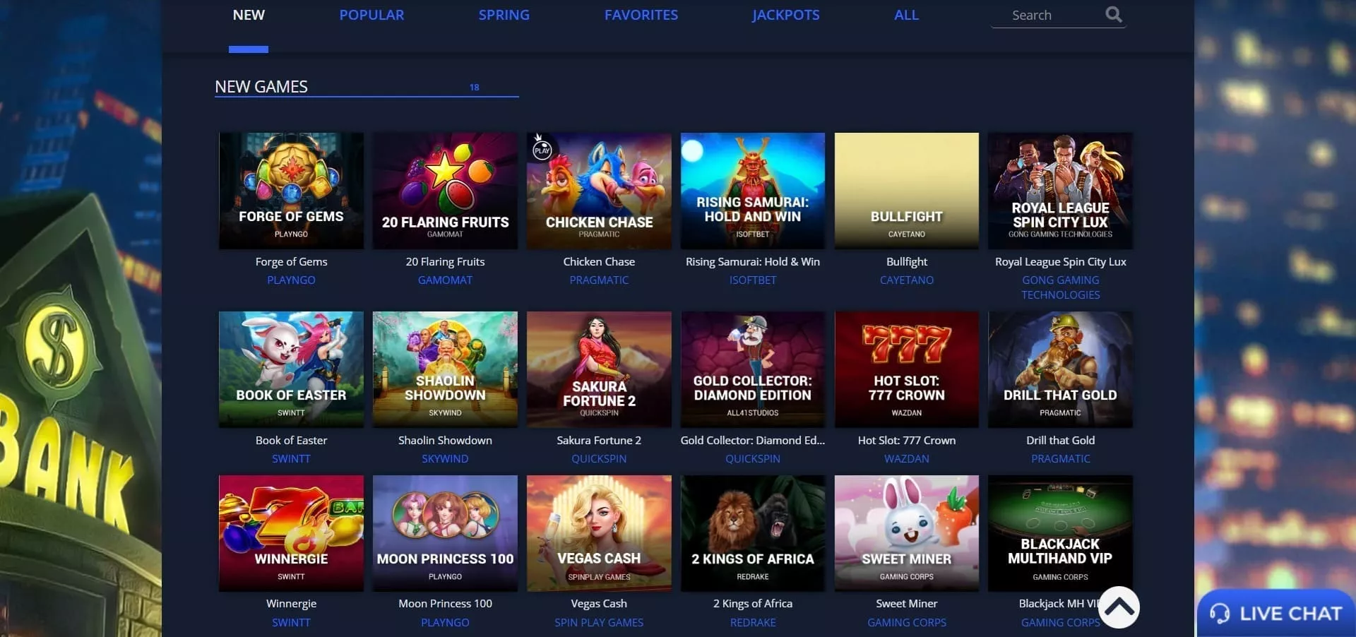 Dużo więcej emocji czeka na Ciebie w kasynie na żywo, które jest obsługiwane przez NetEnt i Pragmatic Play. Możesz sprawdzić swoje umiejętności przeciwko krupierom na żywo, grając w ekscytujące gry, takie jak Blitz Blackjack i Speed Roulette, a także wiele innych odmian tych popularnych gier.