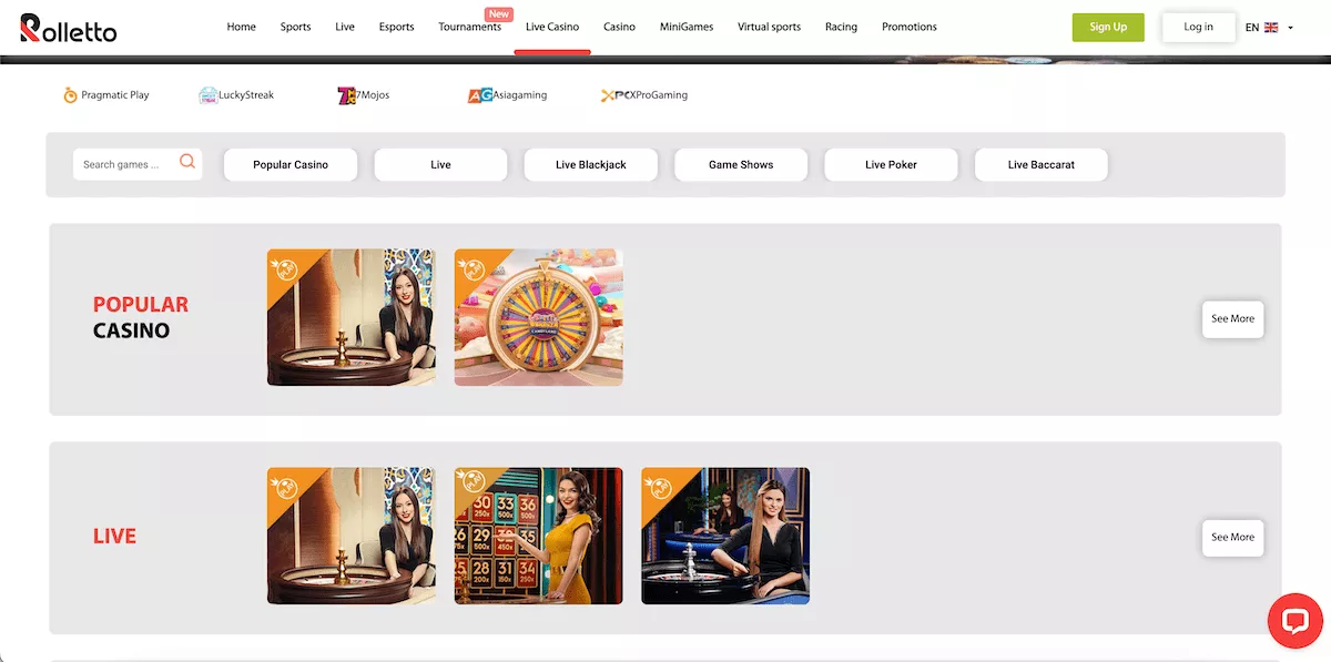 Czy w Polsce w kasynie Rolleto są gry na żywo?