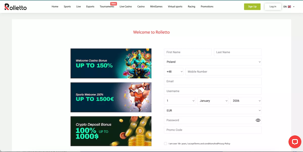 Użytkownicy powinni zarejestrować konto w Rolleto Casino, aby mieć pełny dostęp do wszystkich bonusów i innych cennych ofert. Proces jest prosty i wymaga następujących kroków: