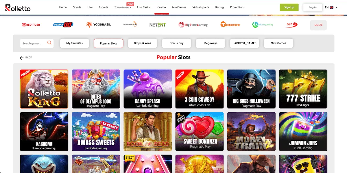 Warto również wspomnieć, że w Rolleto gry na pieniądze, wygodnie jest znaleźć grę według nazwy w zakładce wyszukiwania lub według nazw producentów gier hazardowych.