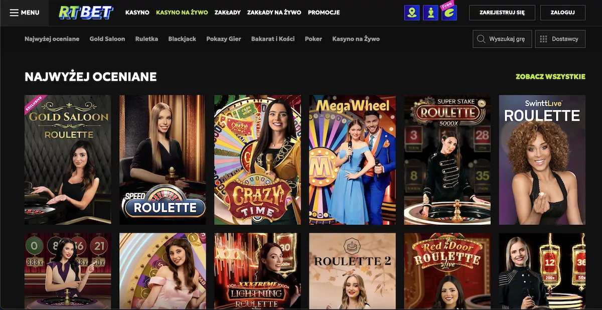RTbet oferuje zróżnicowany wybór gier, w tym sloty, gry stołowe i opcje z krupierem na żywo. Popularne tytuły od dostawców, takich jak NetEnt i Microgaming, są regularnie prezentowane. Z mojego doświadczenia wynika, że są to jedni z najlepszych producentów w branży, ale radzę również przetestować inne gry i dostawców, ale upewnić się, że ich gry oferują współczynniki RTP powyżej 95%.