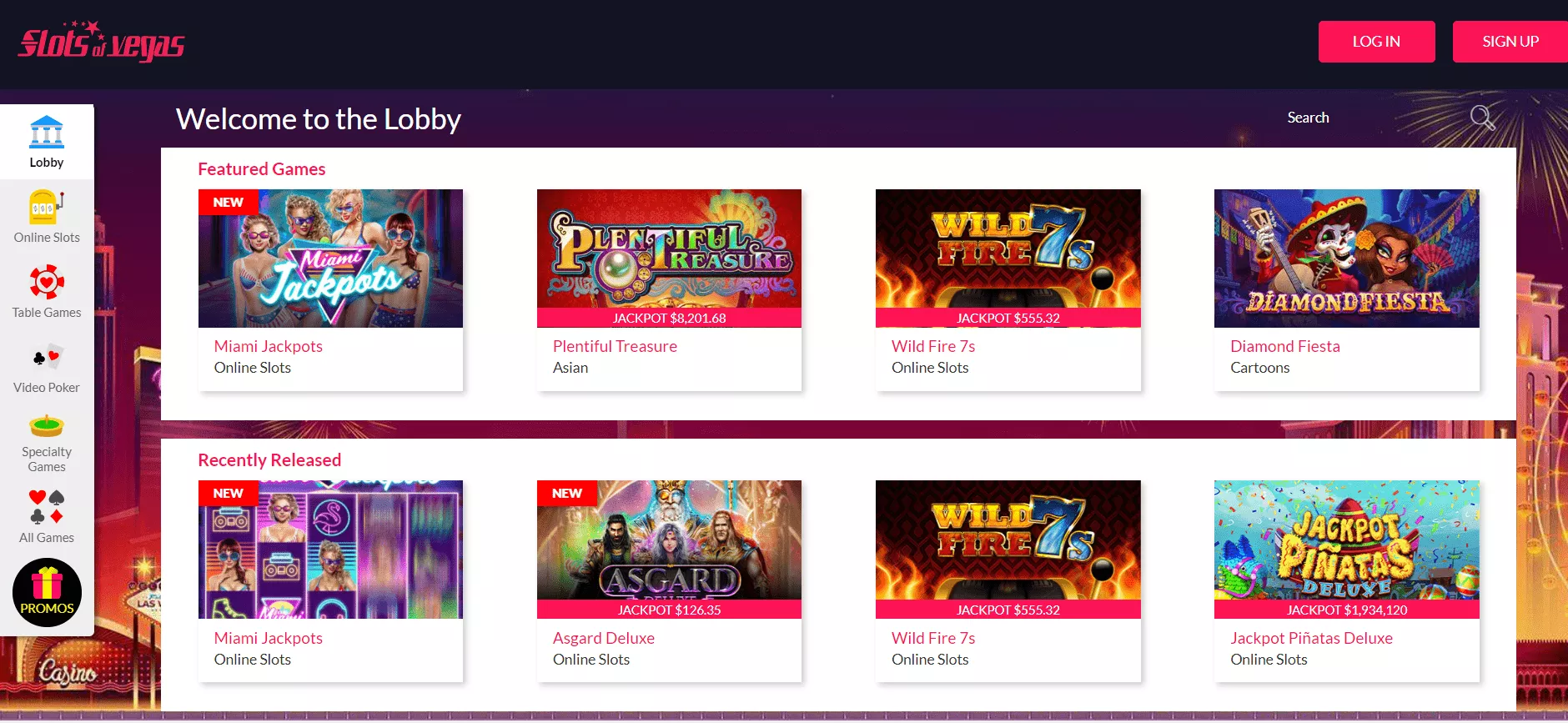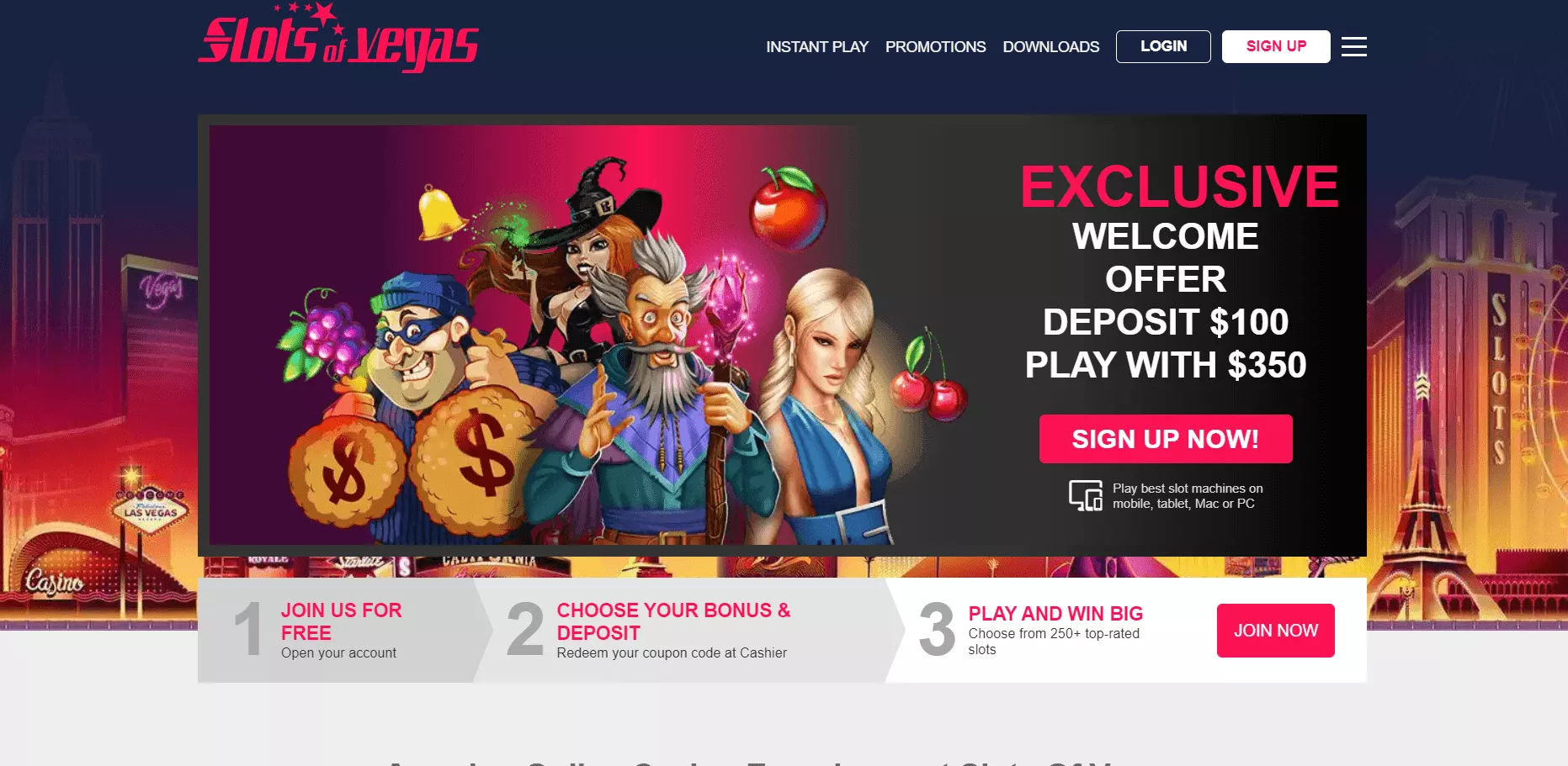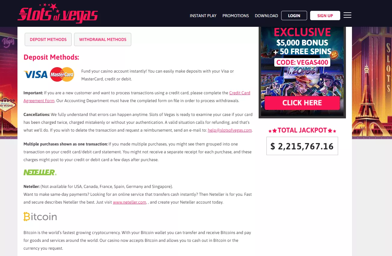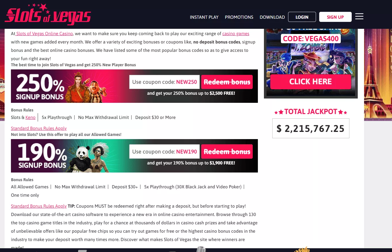 Szczegolowe informacje o bonusach dostepne sa na stronie kasyna: www.slotsofvegas.com
