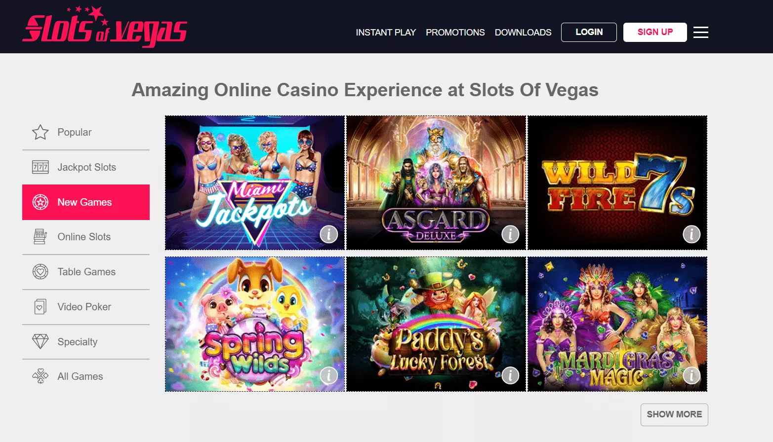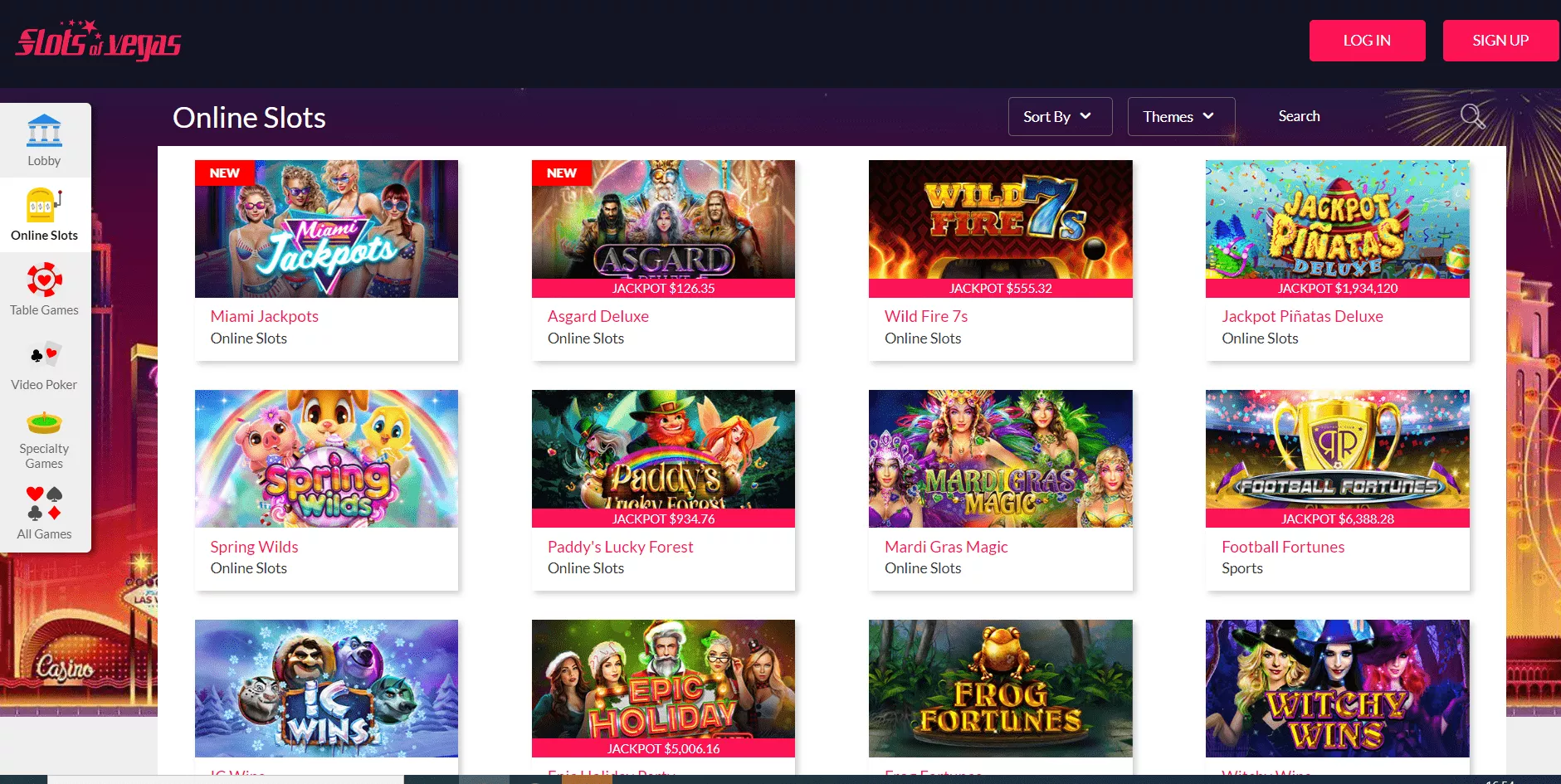Na stronie Slots of Vegas Casino nigdy nie jest nudno! Gracze maja bowiem ponad sto trzydziesci gier kasynowych do wyboru! Slots of Vegas Casino oferuje najlepszy i najwiekszy wybor gier w kasynach internetowych. Znajduje sie tutaj jeszcze wiecej automatow, jeszcze wiecej gier stolowych, a takze jeszcze wiecej gier wideo poker.