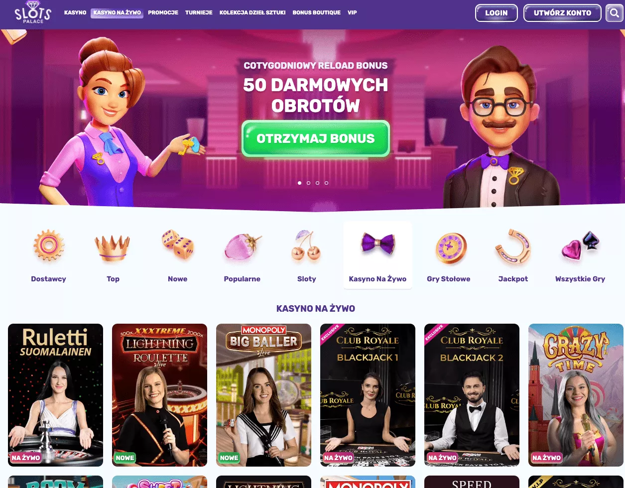 Prawdziwe opinie kasyna Slots Palace podkreślają różnorodność wyboru. W sekcji Kasyno gracze mogą znaleźć następujące kategorie gier zabawy hazardowej: Top, Nowe, Popularne, Kup bonus, Automaty do gry Slots Palace, Jackpoty, Megaways, Gry stołowe, Wszystkie gry. Jeśli graczy interesuje gra online na pieniądze w trybie live, sekcja Kasyno na żywo znajduje się obok zakładki Kasyno.