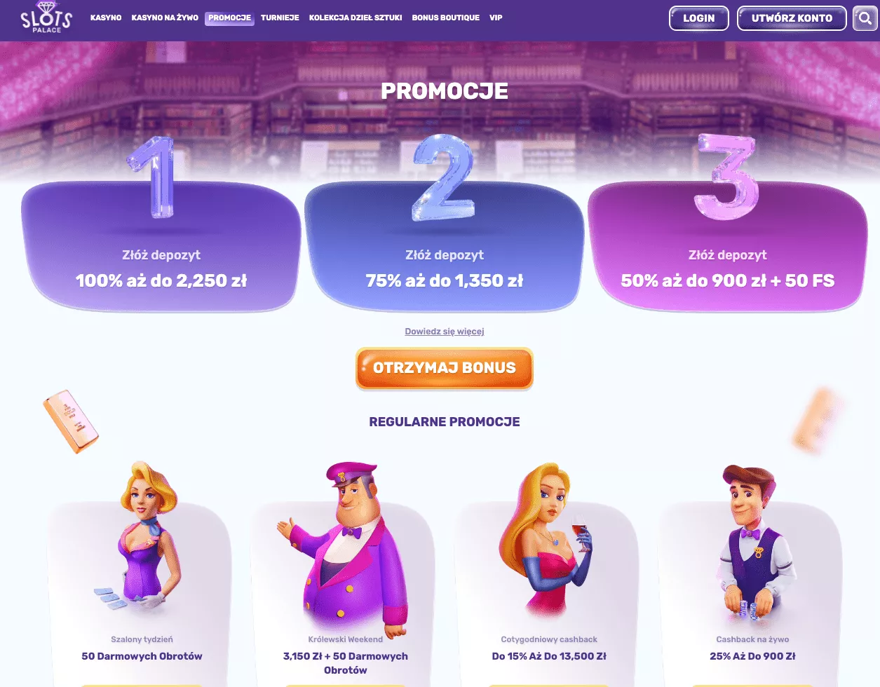Powitalne promocje w Slots Palace Kasyno online oferują graczom nagrody za trzy pierwsze doładowania konta: