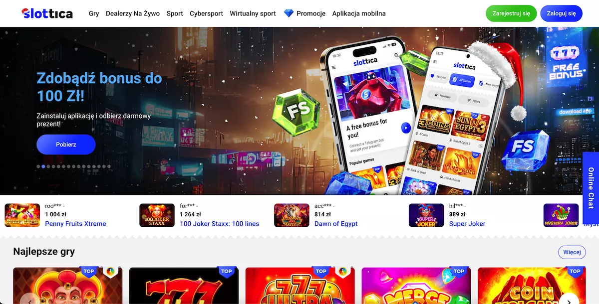 Stworzona przez nas recenzja polskiego kasyna Slottica 2026 obejmuje nie tylko sprawdzenie tego, co do zaoferowania ma serwis w wydaniu dla komputerów oraz laptopów. Udało nam się bowiem także sprawdzić wersję mobilną tego serwisu internetowego, która działa bez zarzutu na dowolnych systemach operacyjnych. Klient bez problemu uruchomi ją poprzez przeglądarki Safari, Chrome czy jakiekolwiek inne.