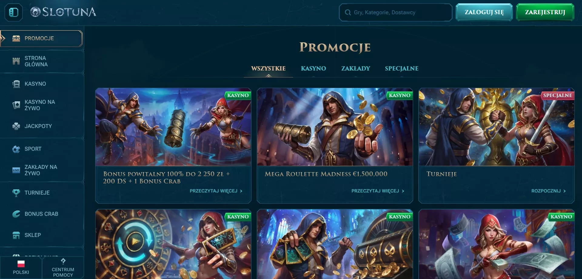 Slotuna Casino to licencjonowana platforma hazardowa, która przyciąga uwagę graczy w Polsce. Poniższa Slotuna recenzja przedstawia najważniejsze elementy tej platformy – od atrakcyjnych ofert bonusowych, przez szeroki wybór gier, aż po bezpieczne metody płatności. Dowiesz się także, jakie zalety czekają na graczy w tym serwisie hazardowym.