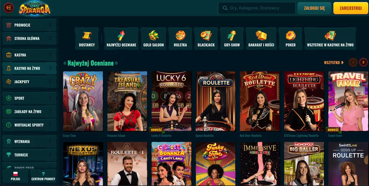 Sekcja kasyna na żywo w Spinanga Casino zapewnia graczom możliwość zanurzenia się w autentycznym kasynowym doświadczeniu. Dzięki grom prowadzonym przez prawdziwych krupierów w czasie rzeczywistym, gracze mogą poczuć atmosferę tradycyjnego kasyna, nie wychodząc z domu. Popularne gry na żywo, takie jak Monopoly Live i Deal or No Deal, oraz klasyczne gry stołowe przesyłane na żywo, dodają tej sekcji prawdziwego blasku, przyciągając zarówno nowych, jak i doświadczonych entuzjastów kasyna. Również wersja mobilna zawiera gry na żywo.