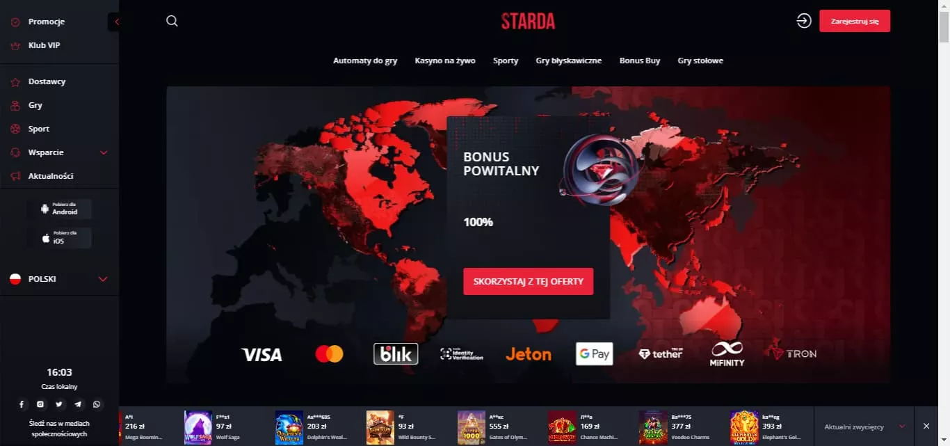 Tak, witryna hazardowa online Starda Casino akceptuje polskich graczy. Ta platforma kasynowa posiada bowiem polskie menu. Dlatego też użytkownicy z Polski nie mają problemów z poruszaniem się po stronie kasyna.