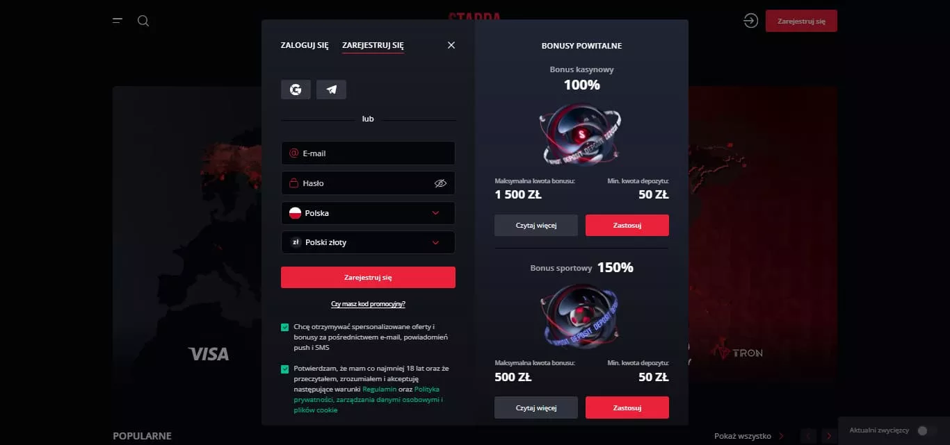 Oferty bonusowe Starda Casino dla graczy z Polski