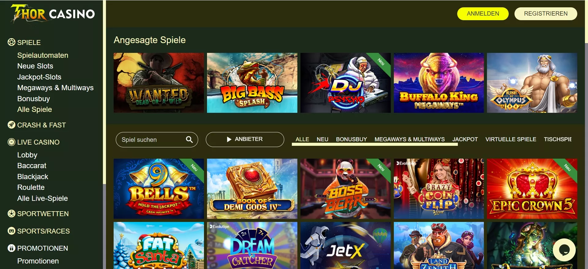 W Thor Casino znajdziesz różnorodne gry, w tym sloty, gry stołowe, oraz gry na żywo. Oferują również opcje z jackpotami, Megaways, Multiways oraz możliwość zakupu bonusów. Dzięki szerokiej gamie gier możesz cieszyć się emocjonującymi doświadczeniami hazardowymi w tym kasynie.