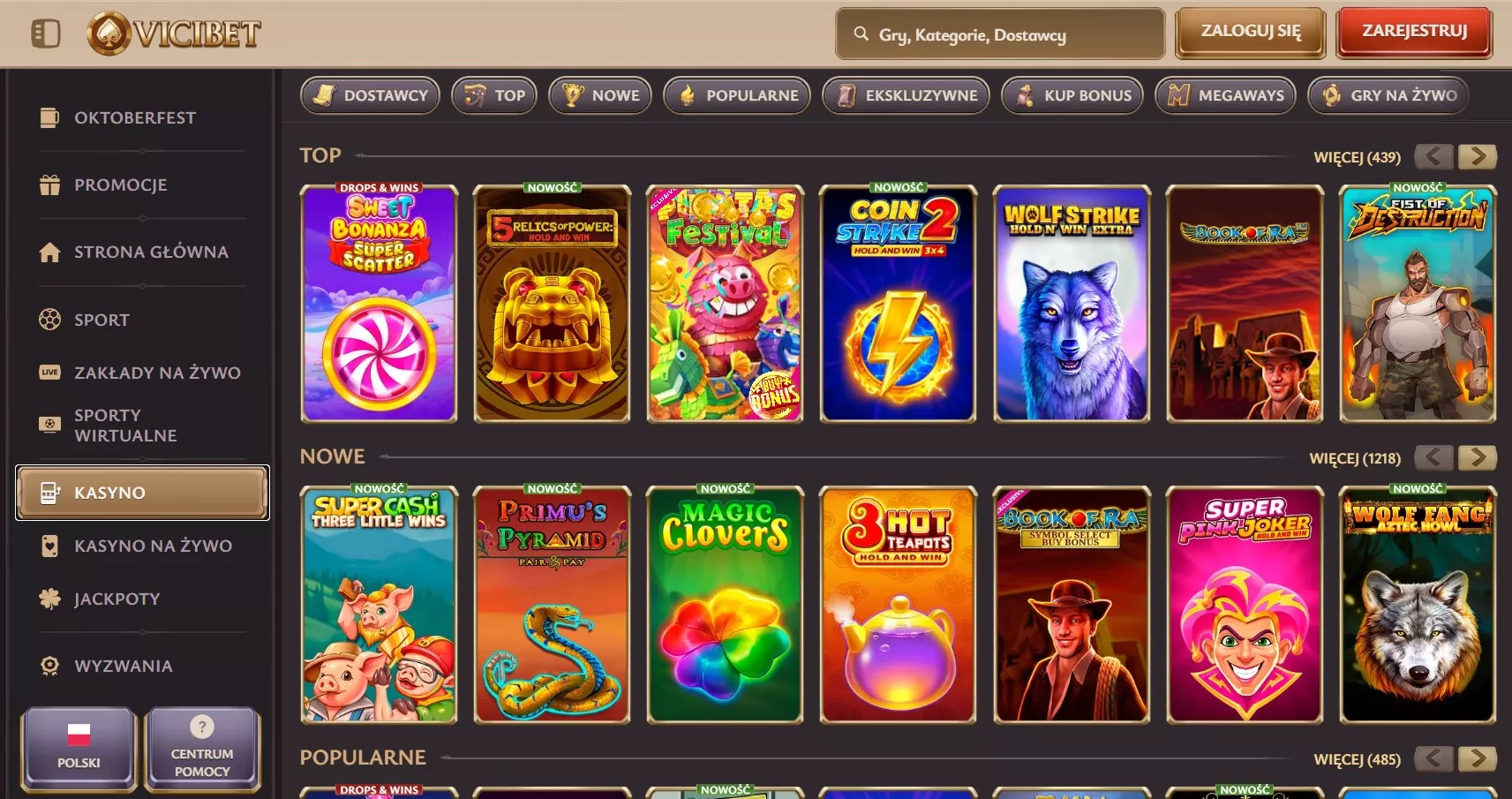 Vicibet dla graczy z Polski zgromadziło kolekcję przekraczającą 10 000 tytułów od niemal stu producentów. Dzięki temu gracze mogą przełączać się między prostymi automatami owocowymi, grami stołowymi w wersji cyfrowej, dynamicznymi slotami Megaways, ruletką i blackjackiem prowadzonymi przez krupierów czy błyskawicznymi grami o natychmiastowych wynikach.