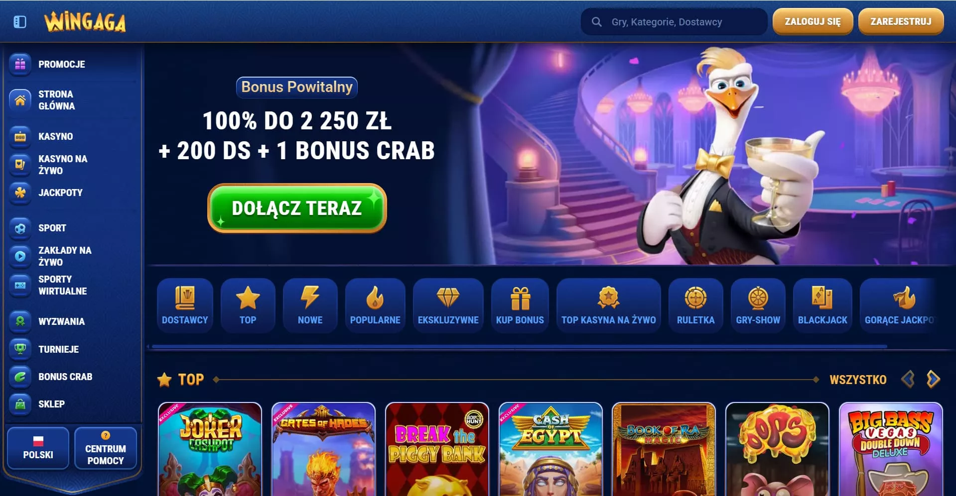 WinGaga to kasyno online założone w 2024 roku, należące do firmy NovaForge LTD. Platforma oferuje ponad 4000 gier od wielu dostawców, w tym automaty, gry stołowe oraz kasyno na żywo. Dostępna jest dedykowana aplikacja mobilna umożliwiająca wygodne logowanie i grę na urządzeniach mobilnych. Kasyno posiada 5-poziomowy program VIP z dodatkowymi korzyściami dla stałych graczy. Bonus powitalny obejmuje do 2250 PLN i 200 darmowych spinów. Niniejsza recenzja kasyna WinGaga dla polskich graczy w 2026 roku przedstawia szczegóły oferty tego operatora dla polskich graczy.