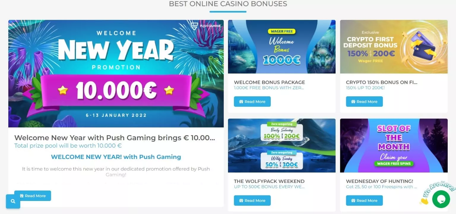 Tym, co naprawdę wyróżnia ofertę, jaką posiada kasyno online Wolfy są wyjątkowe bonusy sticky, które … nie posiadają wymogów obrotu. Takie przyjazne użytkownikowi warunki obrotu zdarzają się na tyle rzadko, a nawet wcale, że jest to jeden z głównych powodów, dla których warto odwiedzić Wolfy Casino oficjalny serwis i przyjrzeć się dokładnie całej ofercie.