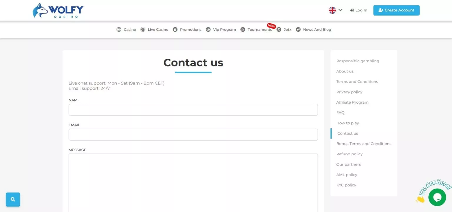 Wolfy Casino kontakt z obsługą klienta