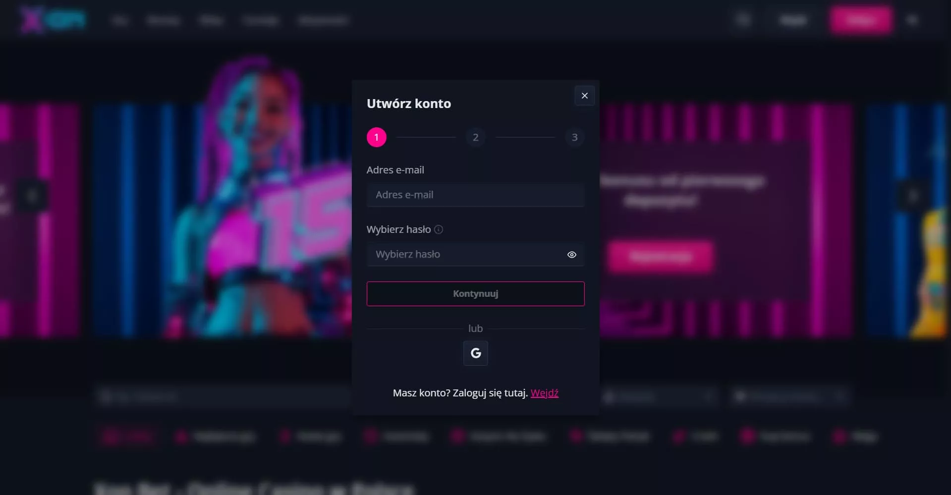 Wejdź na stronę Xon i kliknij “Rejestracja”
