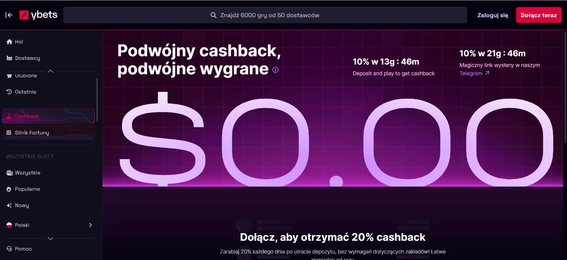 Zwrot gotówki na gry na żywo, co umożliwia rekompensatę strat i dłuższą zabawę na platformie