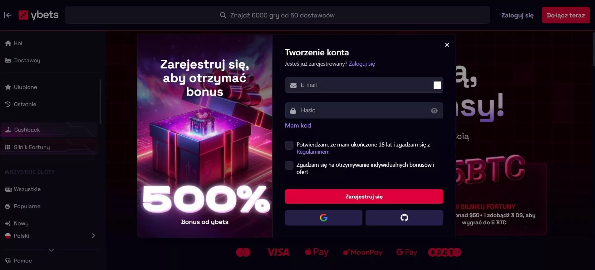 Eksperci z Dobramine opracowali prosty przewodnik, który umożliwia polskim graczom szybkie i łatwe przejście przez proces rejestracji w Ybets Casino. Dzięki rejestracji gracze otrzymują pełny dostęp do atrakcyjnych ofert bonusowych, turniejów oraz gier na prawdziwe pieniądze. Można założyć konto tradycyjnie, jak i przez Google lub Github, co dodatkowo przyspiesza proces.