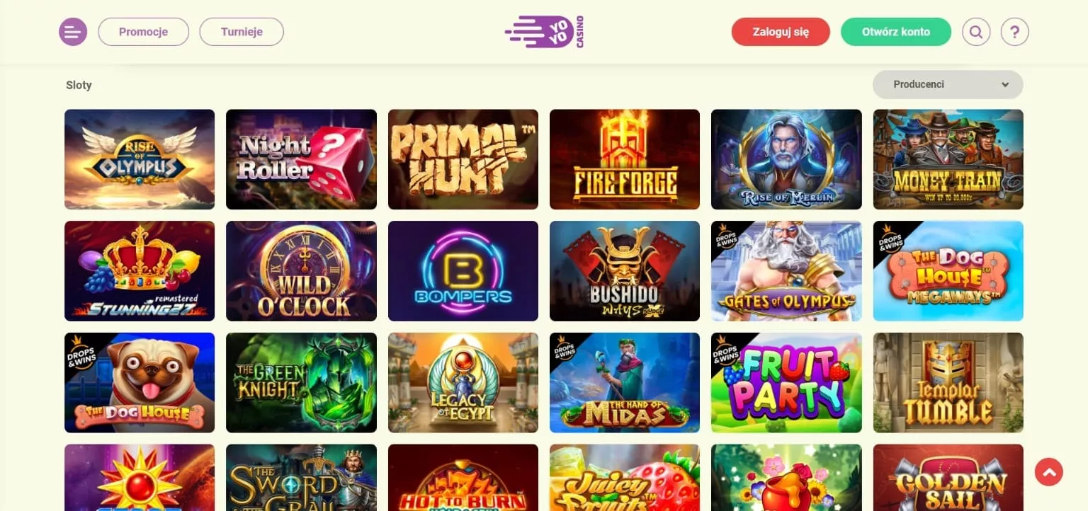 W Yoyo Casino najlepsze gry są dostarczane przez najbardziej renomowanych twórców oprogramowania kasynowego. Wśród znanych marek spotkać można Microgaming, NetEnt, Evolution Gaming, Betsoft, Play’n GO, iSoftBet, Quickspin, Amatic Industries, Elk Studios, Endorphina, GameArt, Push Gaming, Spinomenal, 1x2Games, Playson, Kalamba Games, Yggdrasil, Ezugi, Thunderkick, Habanero, Pragmatic Play i wielu innych.